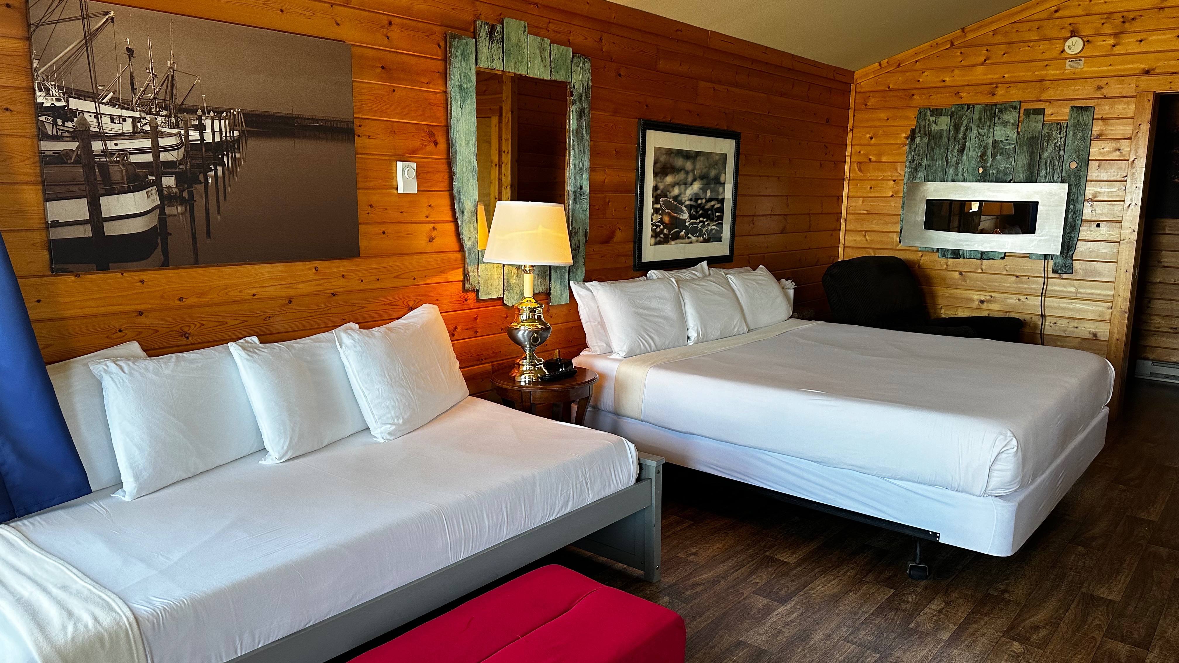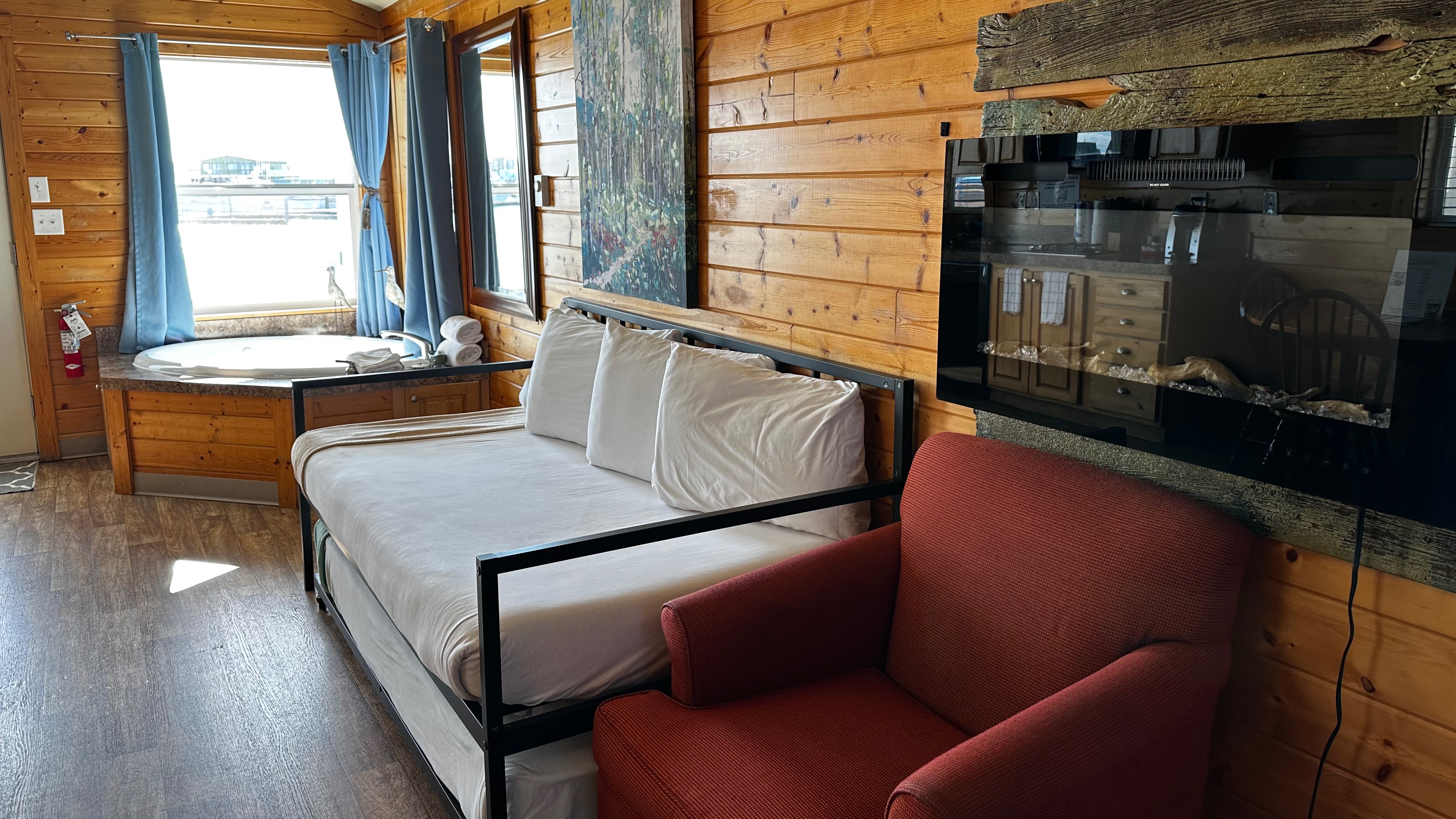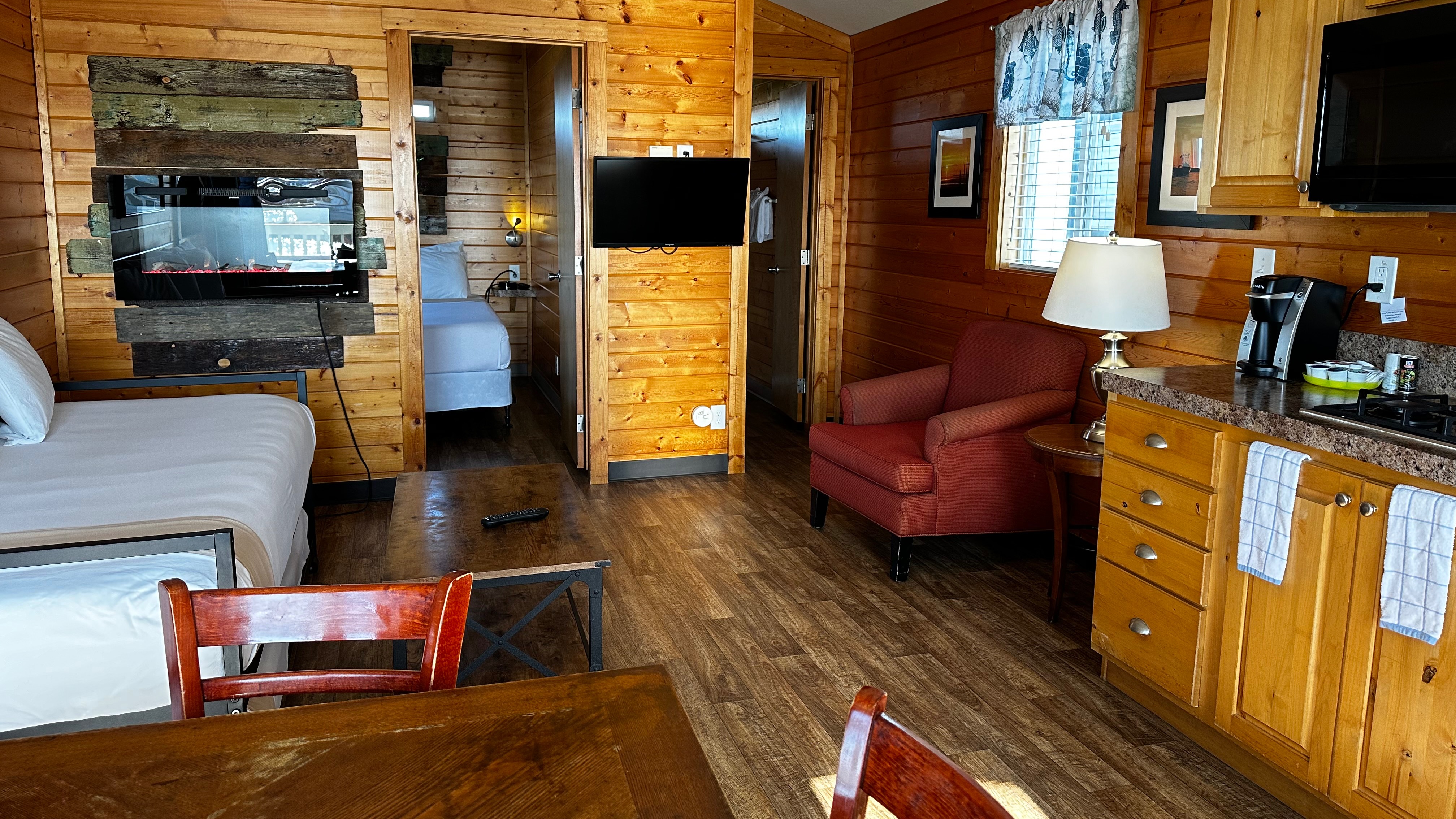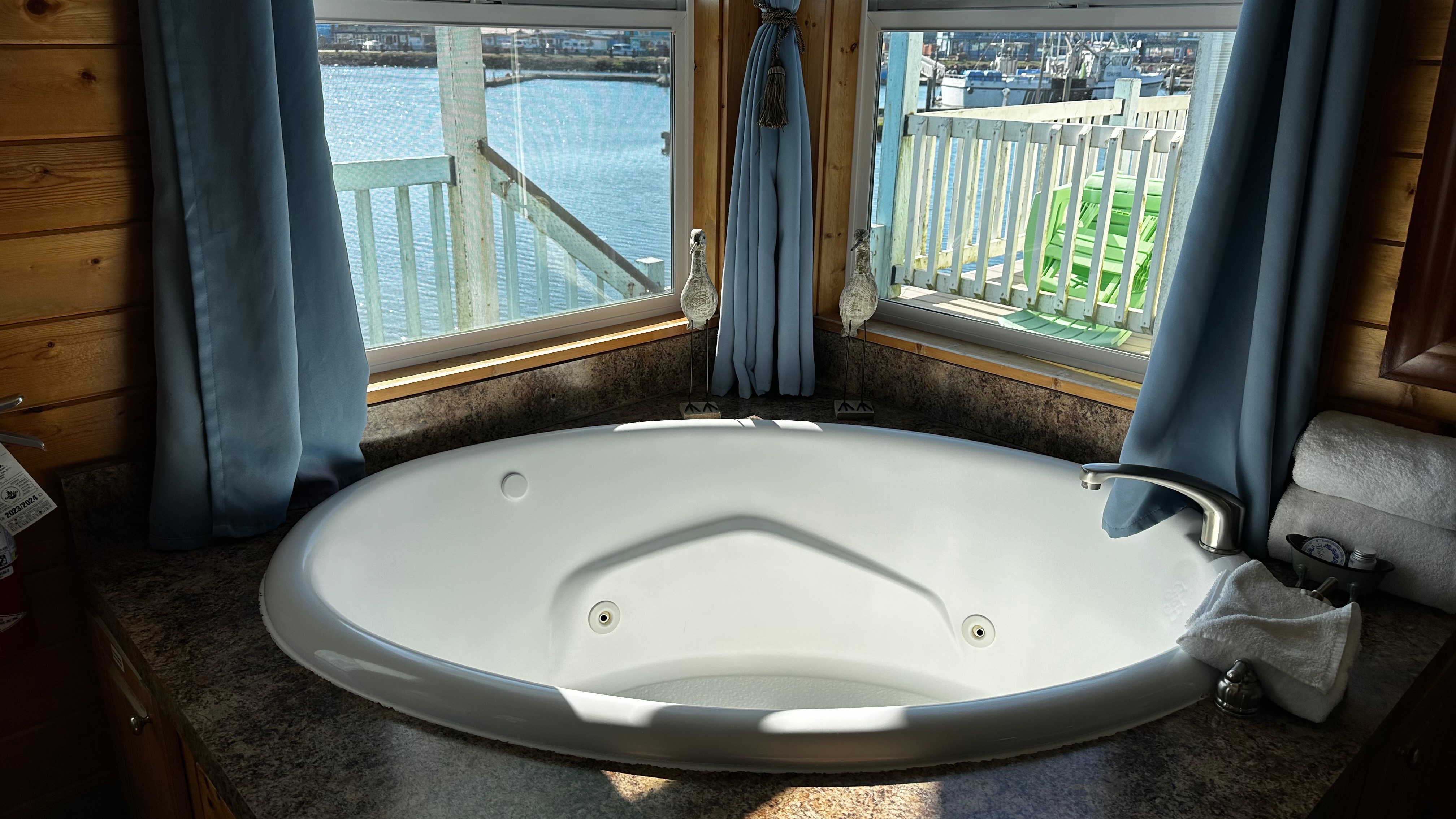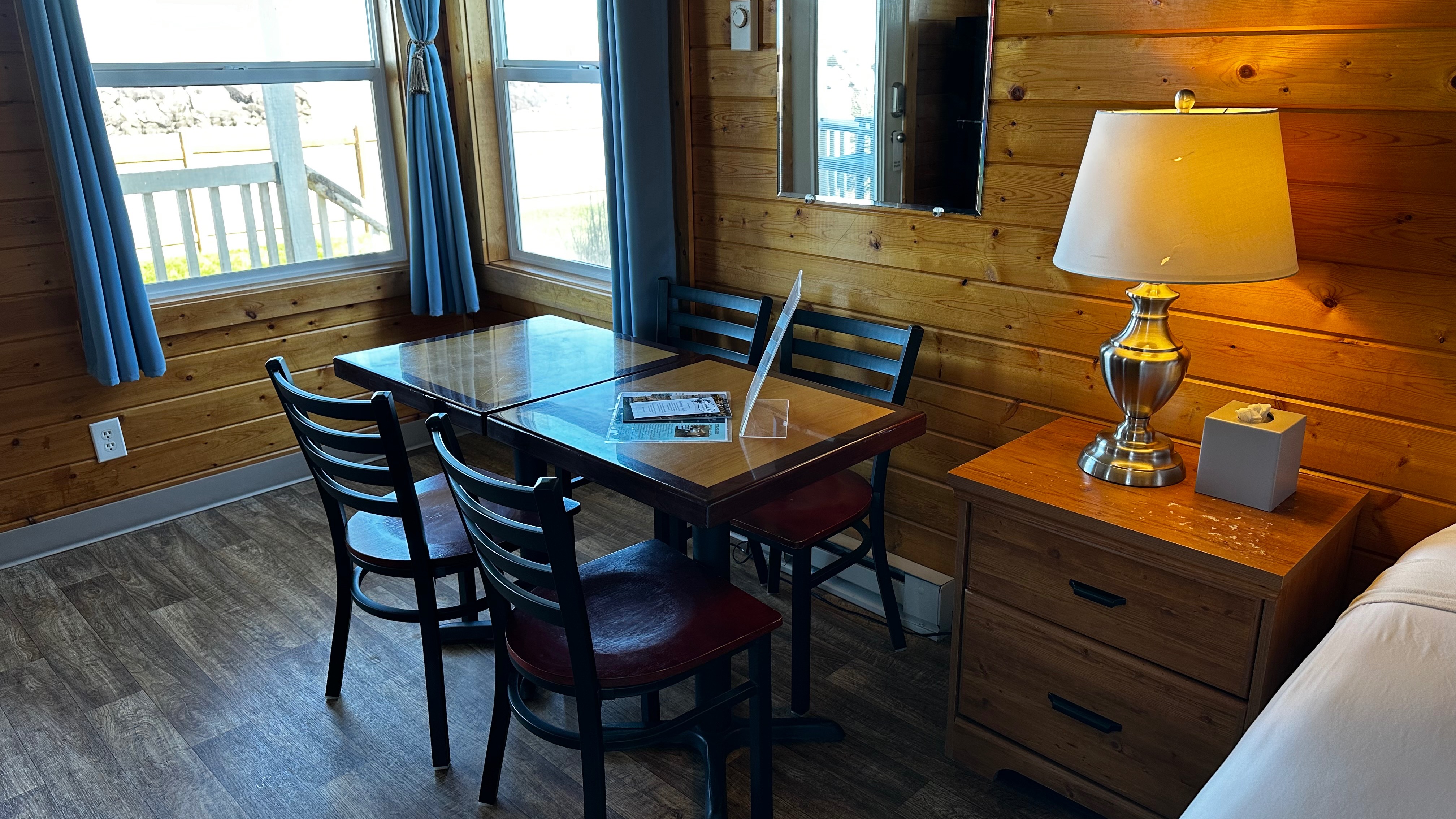 Incredibly spacious and yet cozy each waterfront cottage is uniquely designed to accommodate a variety of preferences and sleeping situations. Each cottage features a full kitchenette with a full-sized refrigerator, toaster, coffeemaker, blender, and dishwasher. Every one of our cottages has a spectacular view of the water. Some are on the bay side, while the others face the marina. You will enjoy a private porch with two easy chairs. Switch on your electric fireplace for instant ambience and warmth or use the outdoor fire pit as you watch the sunset over the ocean.